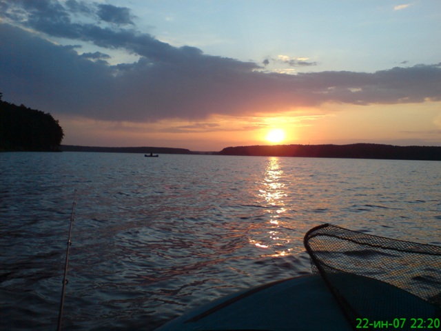 [85 Кб.] 2007, 22 июня, Верхне-Сысертский пруд. Клев продолжался до 22.30, а в 23.30 уже набежала гроза, и через час унеслась дальше (молнии красочно освещали небо, эпицентр грозы был в 5-10 км., нам сильно повезло: дождь слегка промочил нас и мы спокойно