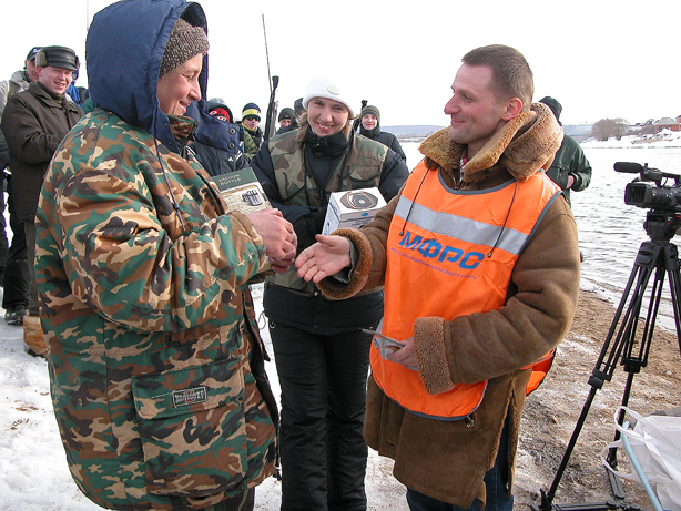 С оживлением спортсмены восприняли награждение двух рыболовов-женщин. К сожалению, они не смогли “утереть” нос ловившим рядом мужчинам, но действовали во время соревнований очень грамотно, можно даже сказать – профессионально. Одна из них – Анна Фомина – в блиц-интервью нашему корреспонденту поведала, что ловит уже около 10 лет, то есть новичком ее назвать язык как-то не поворачивается. В Чулково Фомины приехали всей семьей, прихватив с собой брата супруги. Никто из них рыбы так и не поймал, но заряд бодрости был получен колоссальнейший. Еще до получения приза (то есть не комплимента ради) Анна с восторгом отозвалась об организации соревнований, и выразила надежду на то, что они станут традиционными – место, по ее мнению, хоть и не очень “ловное”, но удобное с точки зрения подъезда участников с разных регионов Подмосковья, да и самой матушки-Москвы.