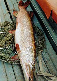 Исхлестав этот участок, плывем дальше. Цепляю вместо белой обманки испытанный "сенеж" с ободранным покрытием, под которым золотится отшлифованная латунь. После нескольких забросов блесну останавливает мягкий толчок, и леска идет в сторону. Генка стоит с подсачком наготове. Успеваю взглянуть на него и удивиться в который раз: ловко же он шевелит усами! Но тут следует сильный рывок, и я сдаю леску. Метрах в десяти от нас вдруг взметается из воды короткая пятнистая щука. На излете она судорожно открывает пасть и трясет головой, пытаясь выбить блесну, которая блестит на нижней челюсти. Щука падает обратно, и леска немощно стелется по воде. Выбираю слабину. И вот у плота зарыскала сильная рыбина, блестя на утреннем солнце крепкой золотистой чешуей. Поднимаю щуку на поверхность, и Генка рывком запеленывает ее в широкий самодельный подсачек.