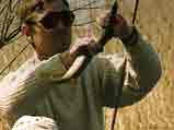 При хорошей освещенности подопытные щуки вполне успешно "охотились" на приманки, при чем как в стоячей воде, так и на течении. В темноте картина изменилась. В темноте щуки тоже воспринимали движение приманки и совершали броски в ее сторону. Однако, в темноте число таких атак было меньше, чем на свету. Очень немногие - единичные - броски были успешными, то есть, завершались поимкой воблера, но при условии, что в аквариуме отсутствовало течение. Наименее активны (по числу бросков) были щуки в темноте при наличии течения. В этих условиях они редко пытались преследовать приманку, а успешные броски отсутствовали вовсе. Таким образом, наличие даже небольшого течения настолько "размывает" гидродинамическую картину движения приманки, что щука, лишенная в темноте возможности использовать зрение, просто неспособна точно нацелиться и правильно рассчитать траекторию своего броска.