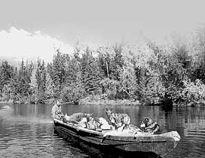 Мы уехали вверх и только взялись за избушку, пошли дожди - вода поднялась почти до весеннего уровня. На спиннинг рыба уже не ловилась, мы поставили сети - надо было добывать пропитание. И щука повалила как весной, штук по десять в сеть. Доходило даже до того, что едва ставили сеть, как поплавки начинали дергаться. Особенно шла щука, когда вода падала, то есть когда рыба катилась вниз. Казалось, если бы вода упала, а потом снова прибыла - все бы повторилась.