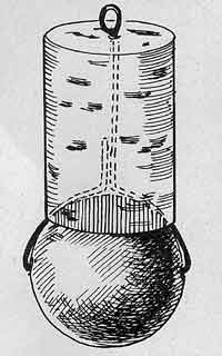 Перед тем как пробку насадить на шарик, в одном из ее концов делают углубление в форме полусферы. После этого проволоку протягивают через шарик, сгибают (см. рисунок), а затем протаскивают через пробку. На верхнем ее конце делают ушко для лески. При этом свинцовый шарик должен прилегать к пробке как можно плотнее.