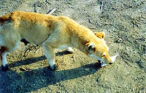 Сейчас же окликнутый владелец вещей, бросившись в погоню, пакет свой с пайком вернул. Черной пришлось бросить его из-за больно бьющего по ногам оказавшегося в пакете с едой термоса. Когда же, через некоторое время, она появилась на берегу вновь, владелец чуть не убежавшего пакета, заметив ее измусоленные щенками чуть не до крови соски, сам, выйдя на бугор, положил для нее большой кусок пахнущего ветчиной, рядом с которой лежал до этого, хлеба. Черная, вначале отбежав, то косясь с опаской на отошедшего к берегу рыболова, то на кусок хлеба, бочком-таки подошла к угощению и, подхватив его, стремглав бросилась к кустам, чтобы там спокойно с ним расправиться. Вскоре она появилась около другой группы рыболовов, затем у следующей и так, пока не обошла всех.