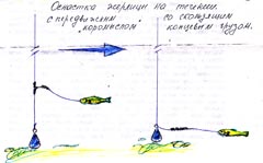 Этими действиями я пытался раззадорить, находящегося поблизости хищника, это своеобразная прелюдия к предстоящему "балансирному" концерту. Болтающийся двойник поднимает придонную муть, и создаётся впечатление копошащейся у дна рыбки. После 20 секундной тряски следует 7 секундная пауза, и снова начинаю трясти балансир. Затем небольшими 1 -2 сантиметра толчками поднимаю балансир на 25 -30 см. Тем самым моя рука улеглась на собственное колено. Теперь можно не напрягая руки начать игру балансиром. Кистью руки производится двойной подброс балансира на 4-5 см, с возвратом в исходную точку, после чего следует пауза продолжительностью 7 -10 секунд. На очередном подбросе балансира ощущаю повисшую тяжесть и на "автопилоте" делаю подсечку.