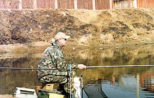 Вскоре меняю тактику. Кладу наживку на дно и жду поклёвки подлещика, который подошёл на мой ароматный прикорм. Вот поплавок лёг, потом поднялся и поплыл в сторону. Подсекаю - и чувствую, что село что-то солидное. Леску держу в натяг и вывожу рыбу к поверхности. Глотнув воздуха, лещ ложится на бок. А дальше всё просто: подвожу к берегу и беру его в подсачек. Закидываю снова, жду, но моё внимание отвлекает маленький шустрый зверек размером с крысу, в желтой шубке, который что-то ищет в метре от меня. Я так тихо и неподвижно сидел, что он подошёл близко ко мне. Через несколько минут зверек скрылся в кустах, и я возвращаюсь к ловле. К своему удивлению, не нахожу поплавка. Быстро подсекаю и вижу на крючке вездесущего ерша.